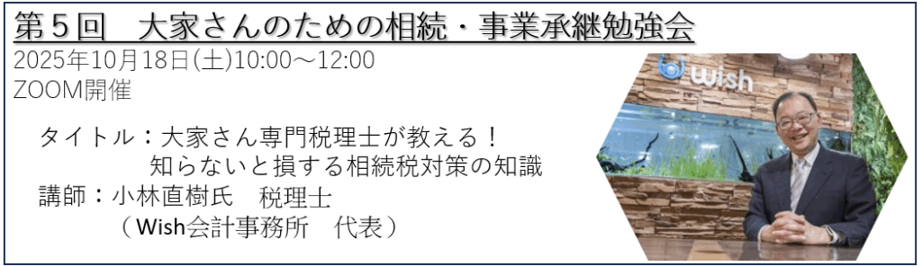 【第5回 大家さんのための相続・事業承継勉強会 ZOOM開催】
